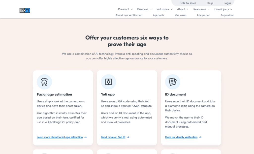 Yoti’s Age Assurance solution is an innovative technology designed to help businesses and online platforms comply with age-related regulatory requirements. Leveraging advanced AI and biometric technology, Yoti enables businesses to verify the age of their users with high accuracy, ensuring that age-restricted content and services are only accessible to those who are legally permitted.